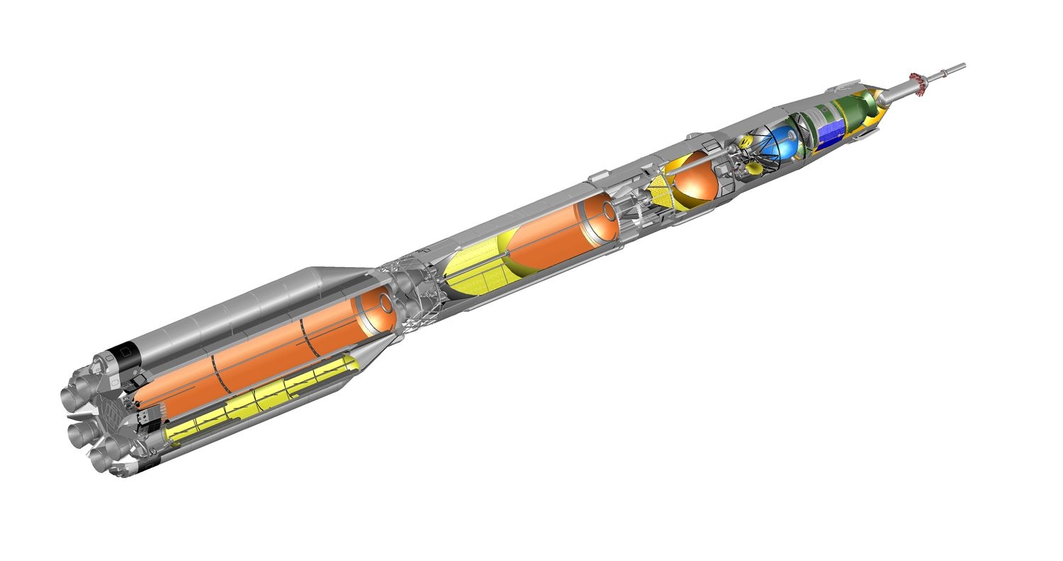 Цитата: Дмитрий Инфан от 02.04.2021 18:27:16Чтобы создать супертяж, оставаясь в ж/д габаритах, нужен ТФЯРД - тягой тонн на 300. Его ставим на центральный блок, массой 450 тонн (вместе с ПН). Рабочее тело - аммиак (чтобы бак не вышел за диаметр 4,1 м). При конечной массе 150 тонн, ЦБ разовьёт порядка 6 км/с. С боков ставим два боковых блока на базе "Союза-5" - это будет первая ступень, которая даст ещё 3 км/с. ЦБ должен чуть-чуть не добирать до круговой скорости (ПН довыводится за счёт небольшого разгонного блока) и возвращаться обратно на землю, наподобие первой ступени "Фалкона" (при старте с Плесецка, скажем, приземляться на Камчатке). При этом двигательный отсек ЦБ с ТФЯРД должен отделяться от аммиачного бака (бак одноразовый), чтобы сократить размер теплозащиты. Посадка отсека с ТФЯРД на вспомогательных двигателях. Думаю, что в 50 тонн возвращаемый отсек вполне может уложиться.