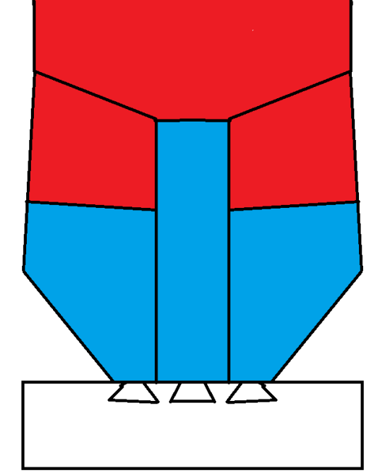 Красным показано горючее, синим - окислитель, белым - двигатели и стартовый стол.