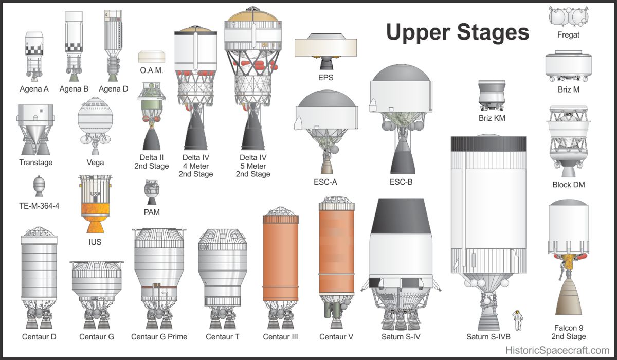 Так вот, первые 20 лет (точнее 22 года) космической эры "весь остальной мир" в лице США делал точно так же как мы. Добавлял к ракетам дополнительные ступени и летал на них куда хотел начиная с ГПО и кончая Ураном и Нептуном. Добавлял к Атласу РБ Аджена и Центавр, к Титану тоже и ещё Транстейдж, к Дельте-ххх0 - Стар-37/48 и т.д. и т.п. Эти ракеты могли использоваться и без разгонных блоков. Даже Сатурн-5 один раз слетала без разгонного блока S-IV. Всё как у нас. Никаких нюансов.