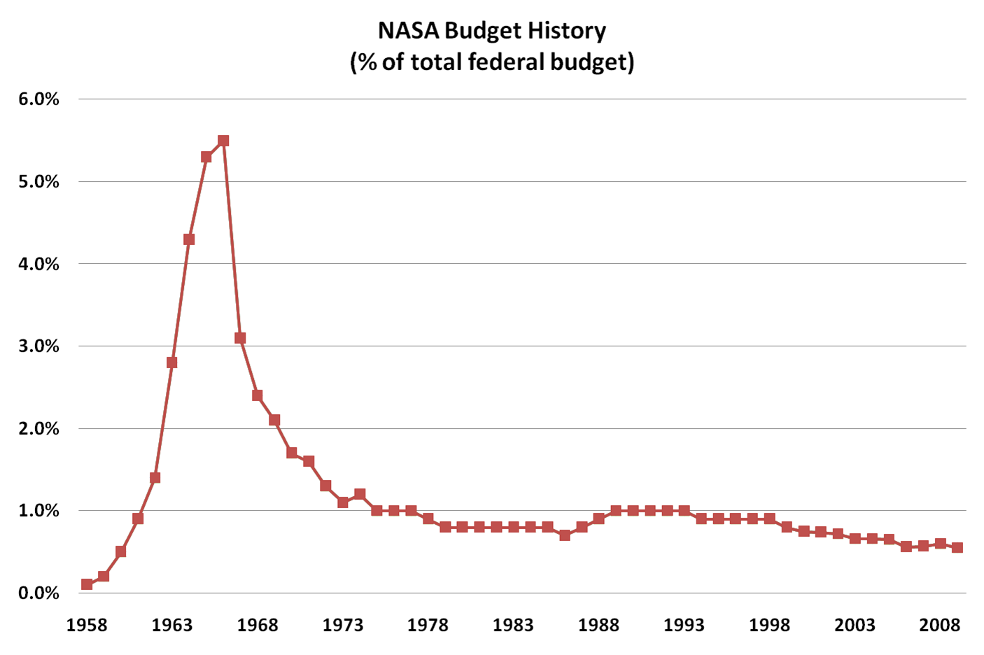 Если мы сравним до бюджета США то прироста не было. Факт, будет НАСА уже от 50 лет, процентуально до бюджета, уменьшает.