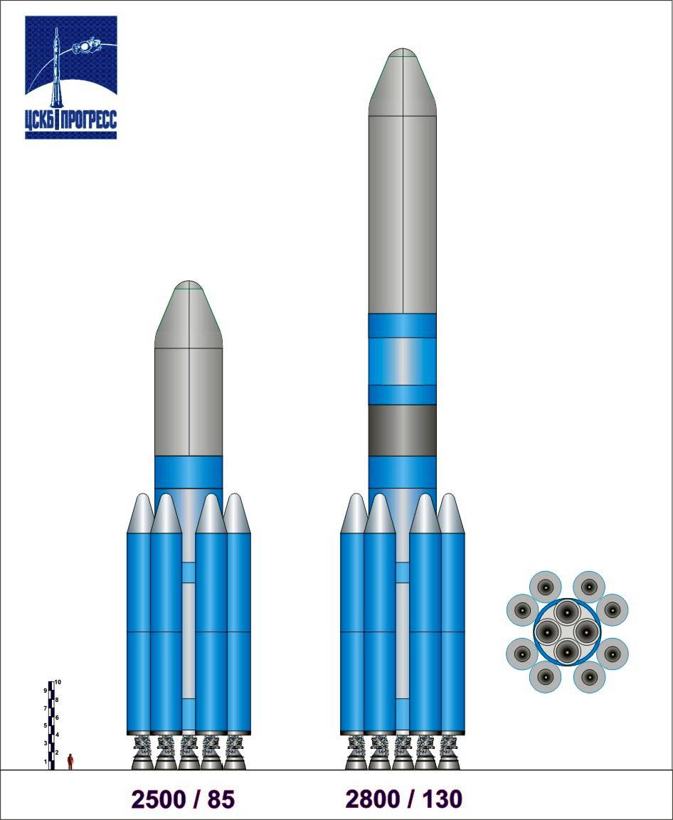 сверхтяж от РКЦ Прогресс, новая версия. Вместо 4-х боковушек (4,1 м) приклеили 8 боковушек от Союза-5.