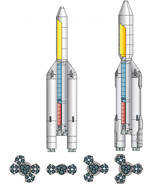 А вот на Луну и далее из этих моноблоков собираем и на 60 тонн и более. Но базу "карандаша" не более Протона - что бы работал как "народно-хозяйственная" ракета.