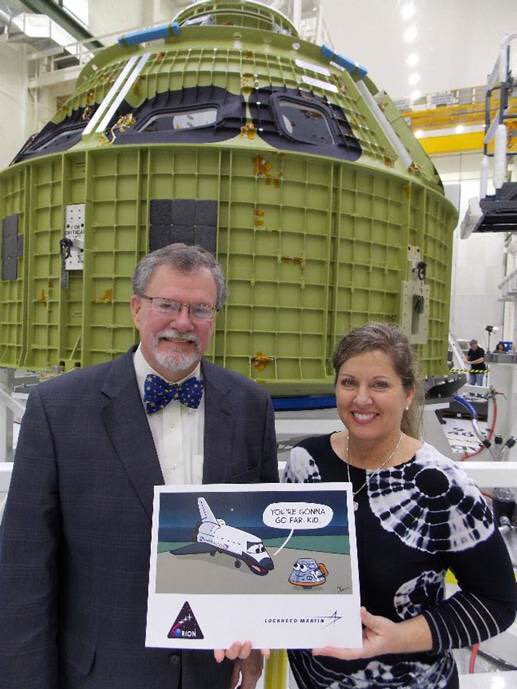 .@NASA_Kennedy Proud to present the team this poster for the arrival of the #EM-1 @NASA_Orion spacecraft.
