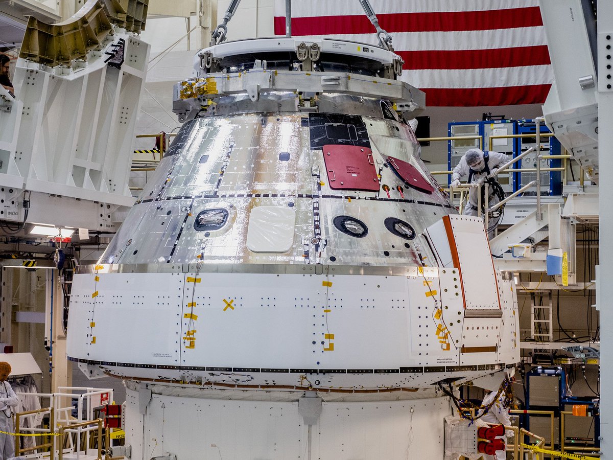 #Orion update. Most integrated functional chceck-outs complete.  Heatshield install not yet complete.  Mid-November it will go to Ohio.