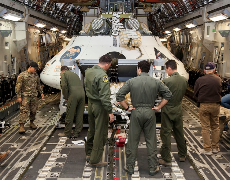 Airmen and testers from the 418th Flight Test Squadron joined Army, NASA and contractor personnel to participate in an airdrop of a mockup of the Orion spacecraft. The capsule was airdropped from a C-17 Globemaster on loan from Joint Base Lewis-McChord, Washington, over the Yuma Proving Ground in Arizona. NASA is continuing contingency tests of the Capsule Parachute Assembly System, or CPAS.