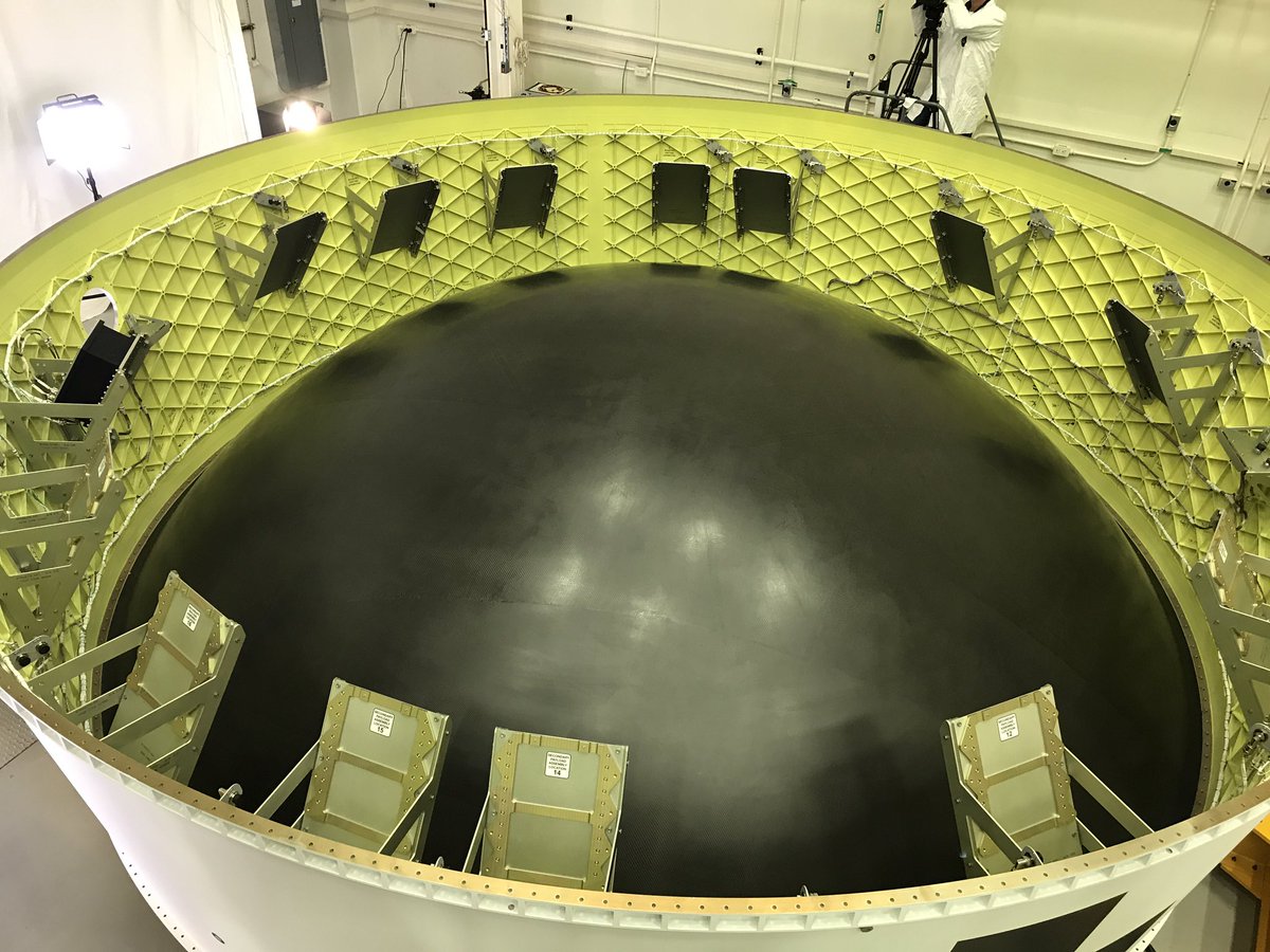 The adapter, approximately 5 feet tall and 18 feet in diameter, was designed and built at Marshall with advanced friction stir welding technology. Inside the adapter, engineers installed special brackets and cabling for the CubeSats. The CubeSats, which are small science experiments, stay safely stowed inside the adapter until after Orion has separated from SLS. These boot-box-sized science and technology investigations will help pave the way for future human exploration in deep space.