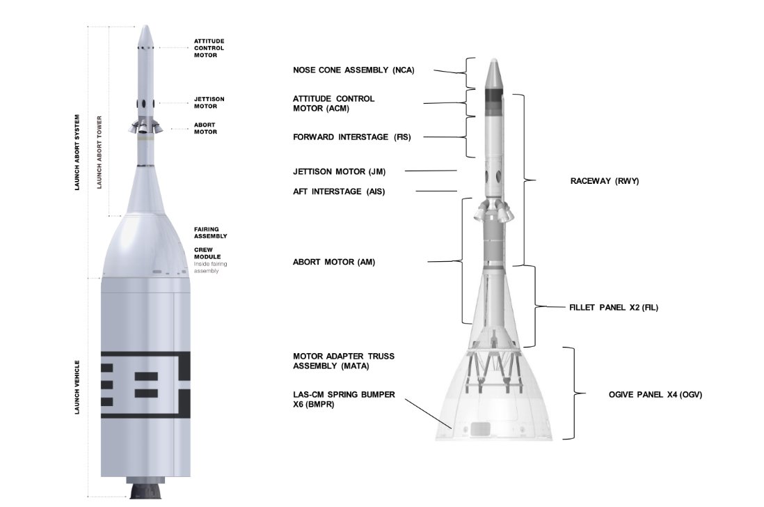 According to Carlos Garcia of Orion Production Operations at Kennedy there are three motors on the LAS- the abort, attitude control and jettison motors. The abort motor can propel the crew module away from the rocket in milliseconds should there be an issue with SLS on the pad or during launch. The attitude control motor would steer the spacecraft during the maneuver. The jettison motor will pull the LAS away from the crew module, allowing Orion's parachutes to deploy with the spacecraft safely landing in the ocean.