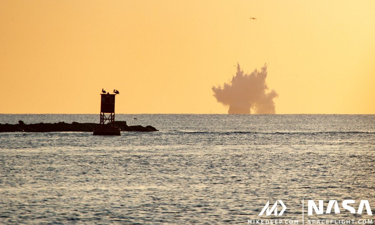 Without the chutes, the Orion capsule plummeted into the Atlantic Ocean around 7 miles (11 kilometers) east of Cape Canaveral, hitting the water at an estimated 300 mph (480 kilometers per hour) around 3 minutes, 12 seconds, after liftoff, Reed said. The spent Peacekeeper booster and abort system also impacted the ocean, sending plumes of water hundreds of feet into the air.