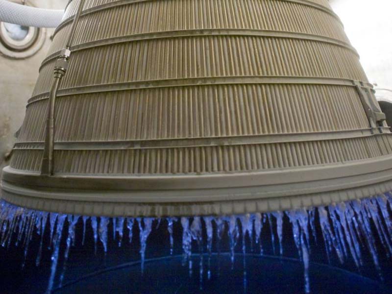 Однако ж там, если приглядеться, охлаждение сопла криогенным компонентом идёт до самого среза, если не ошибаюсь - так что чего уж удивительного, если в пристеночном слое температура опустится ниже 100 С (именно ста, а не нуля - чего все насчёт нуля-то, если речь о конденсации? и похоже там больше не на сосульки, а на струйки воды, ИМХО).