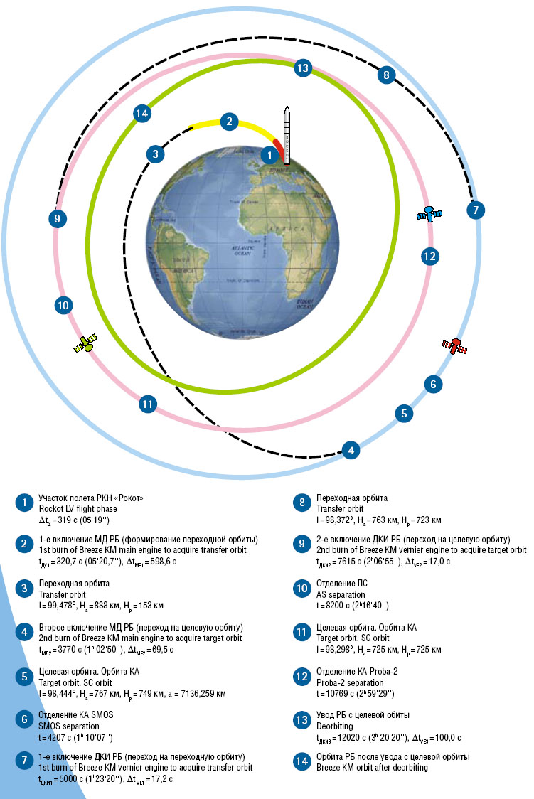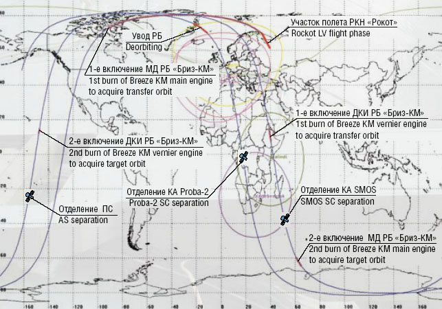 Пуск РКН Рокот - Бриз-КМ с КА «SMOS/PROBA-2» планируется провести с космодрома Плесецк 02.11.2009 в 01 час. 50 мин. 51 сек. UTC (02.11.2009 04 час. 50 мин. 51 сек. декретного московского времени).